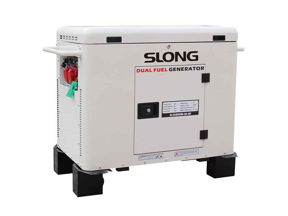 ژنراتوربرق دوگانه‌سوز اسلانگ SL12000W-SE-DF SLONG با توان ۱۲ kW و سوخت بنزین وگاز، گزینه‌ای   silent و اقتصادی برای کارگاه ها،مغازه ها،کارخانه‌ها، بیمارستان‌ها و منازل است.